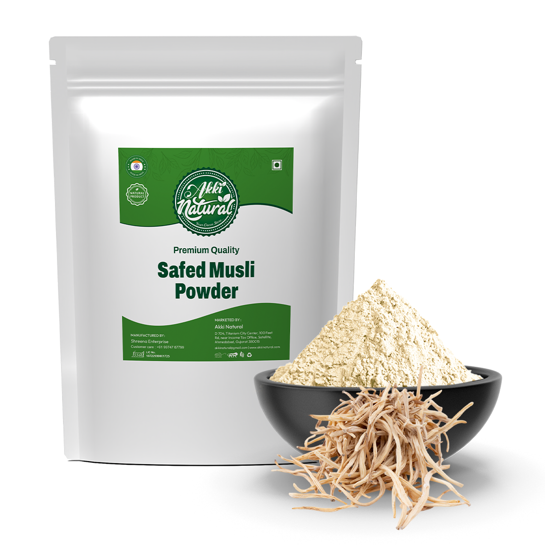 Safed Musli Powder is a natural herbal energy booster and immunity enhancer, traditionally used as a general tonic and dietary supplement. Rich in nutrients, it supports vitality, stamina, and overall well-being.